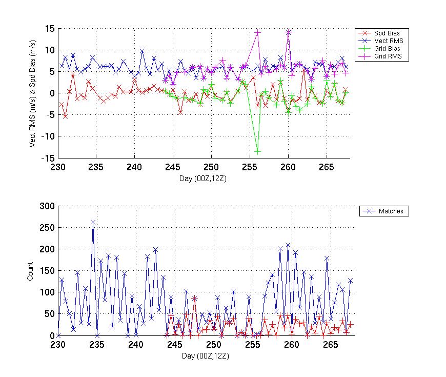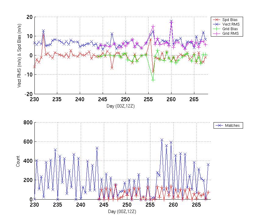 Comparisons for AVHRR winds with Antarctic RAOB stations